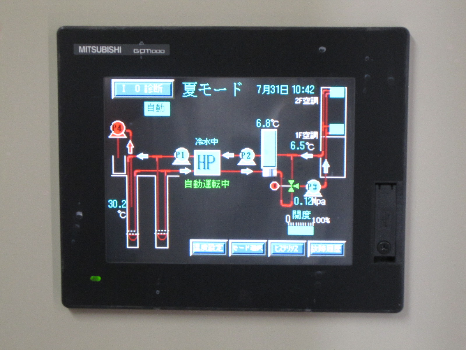 地中熱交換井2本と温冷水配管による空調システム全体を自動制御